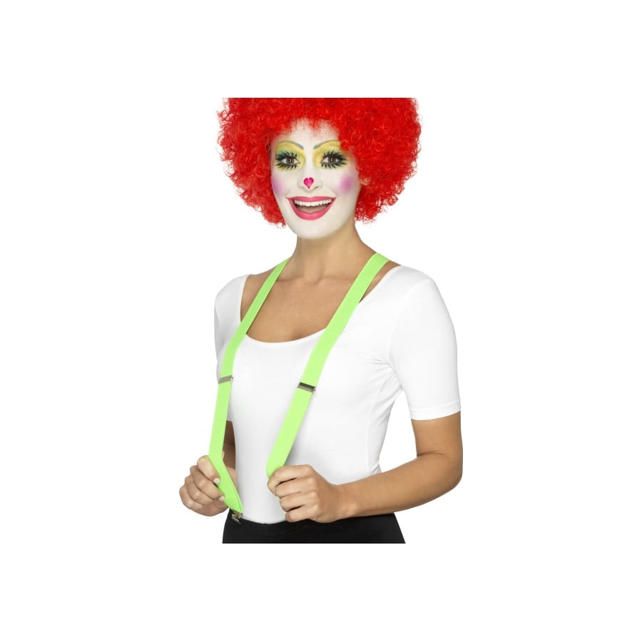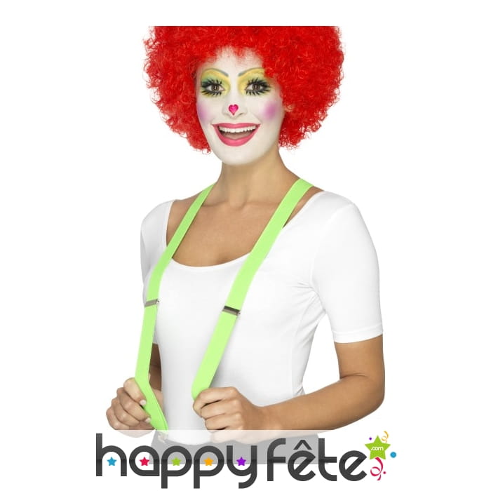 Tout va avec un costume de clown, y compris le vert, c'est pourquoi nous vous suggérons ces bretelles vertes de clown, dans un joli ton vert fluo. Vous pourrez moduler tous vos autres accessoires de clown en fonction de cela : un peu de vert sur la perruque, le maquillage ou les grosses chaussures. Petit plus de ces bretelles : elles conviennent aussi pour la Saint-Patrick.