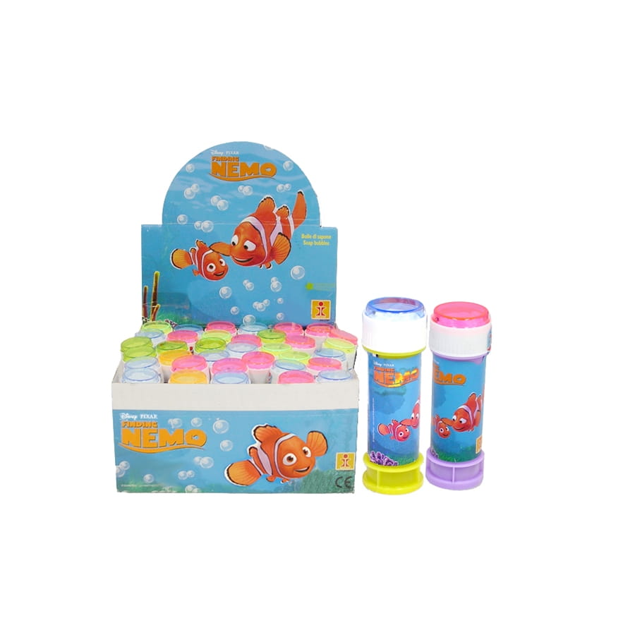 Voilà un jouet qui va plaire aux enfants de tout âge! Un jouet 2 en 1 avec un flacon de bulle de savon de 60 ml et un jeu de patience avec, tout cela sous licence Disney, car le flacon est imprimé du dessin de Némo, le petit poisson tout gentil que tous les bambins adorent! Votre enfant pourra jouer avec les bulles de savon et quand il en aura marre, il pourra s'amuser avec le jeu de patience, 2 en 1 comme nous l'avons dit! Il n'est pas possible de choisir la couleur du flacon, vendu à l'unité, choisissez-en plusieurs pour recevoir différents coloris.
