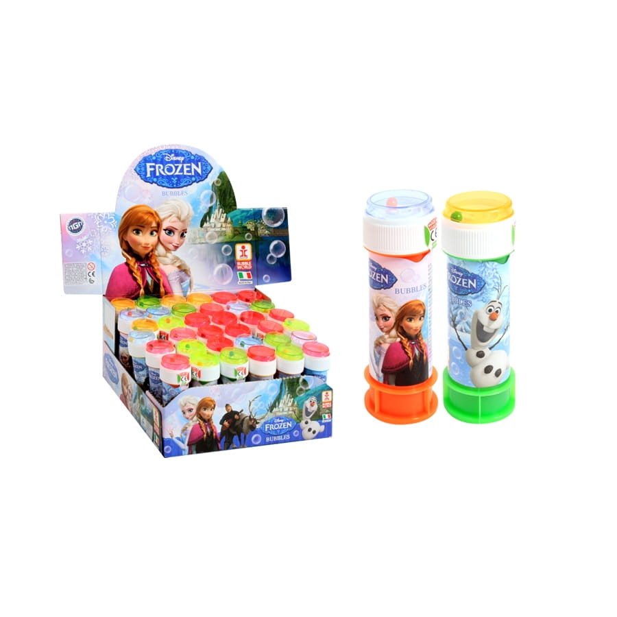 Avec ce petit récipient muni de différentes couleurs contenant des bulles de savon Reine des neiges, vous pourrez admirer les nombreux personnages de la Reine des neiges, jouer avec les bulles de savon mais également jouer au jeu de patience qui se trouve au-dessus du récipient. Ce récipient contient 60 ml de bulles de savon et le tout est sous licence Disney. Il est vendu à l'unité et lors de la commande, vous n'aurez pas le choix des décorations qui entourent le tube mais qui reste sur le thème de la reine des neiges.