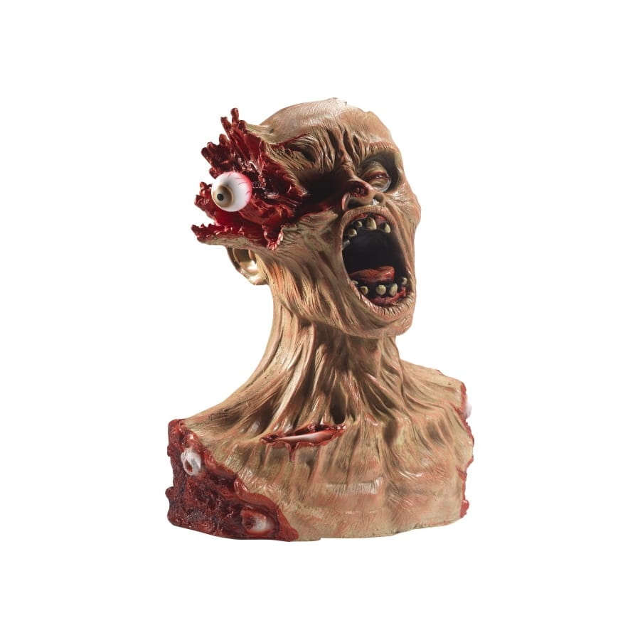 Virez vos statuts le temps d'halloween et remplacez-les par ce buste de zombie avec oeil explosé, en latex. Il s'agit d'un objet de décoration qui se rapproche assez de la réalité. En effet, sa couleur conjuguant rouge et beige aboutit à un résultat impressionnant. Composé de latex, ce buste présente au niveau de la tête un oeil éclaté et une bouche grande ouverte. Ce qui laisse entrevoir des dents pourries. Horreur garantie !