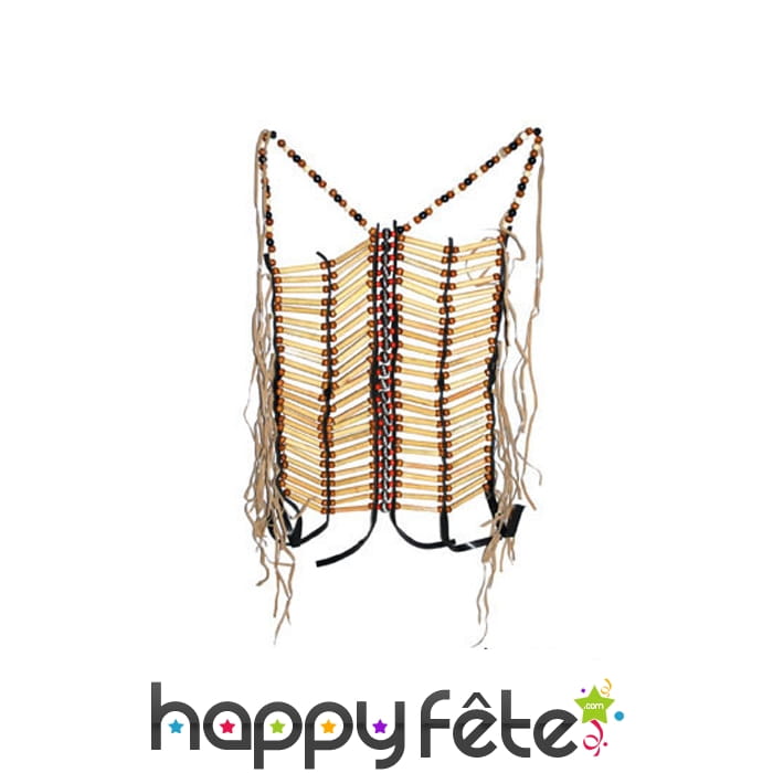 Ce bustier indien naturel perles et tubes de bois sera la pièce maîtresse de votre tenue.