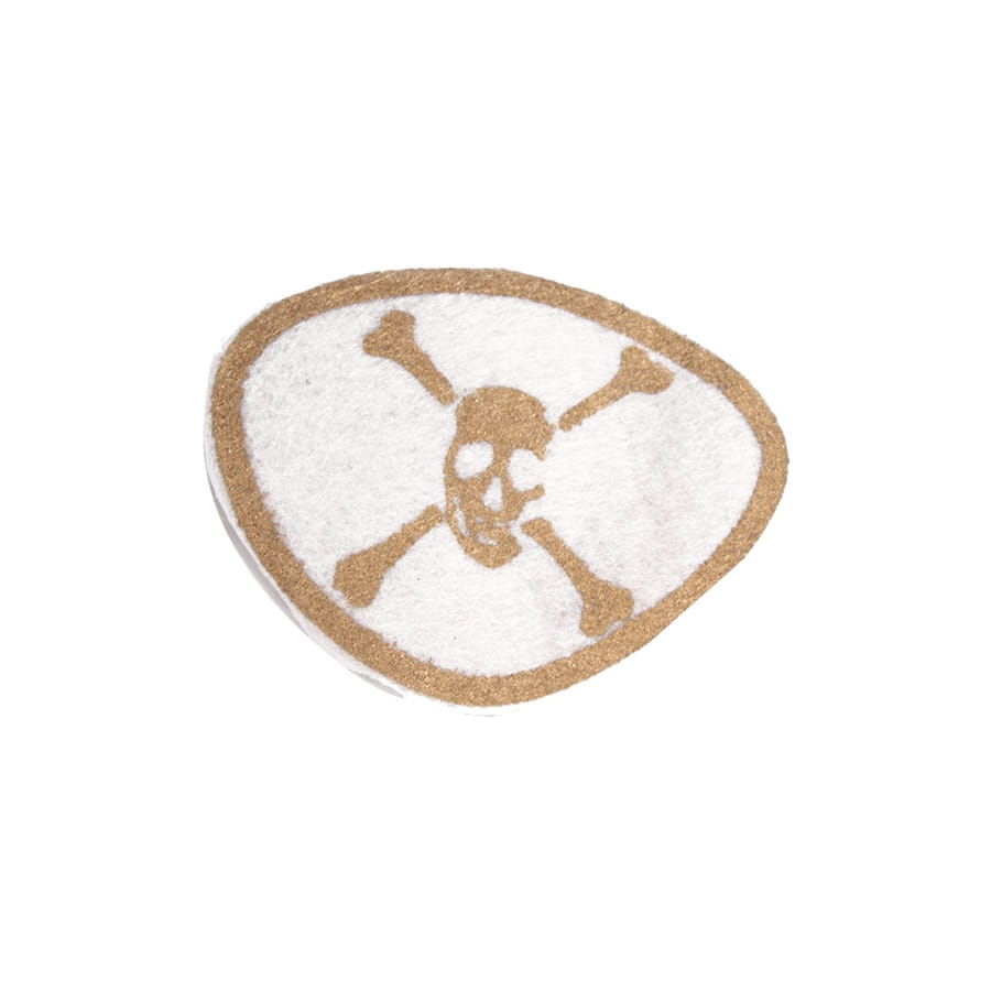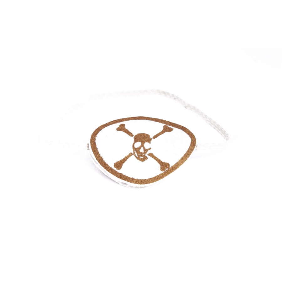 Devenez un redoutable flibustier avec ce cache-oeil de pirate blanc imprimé doré.