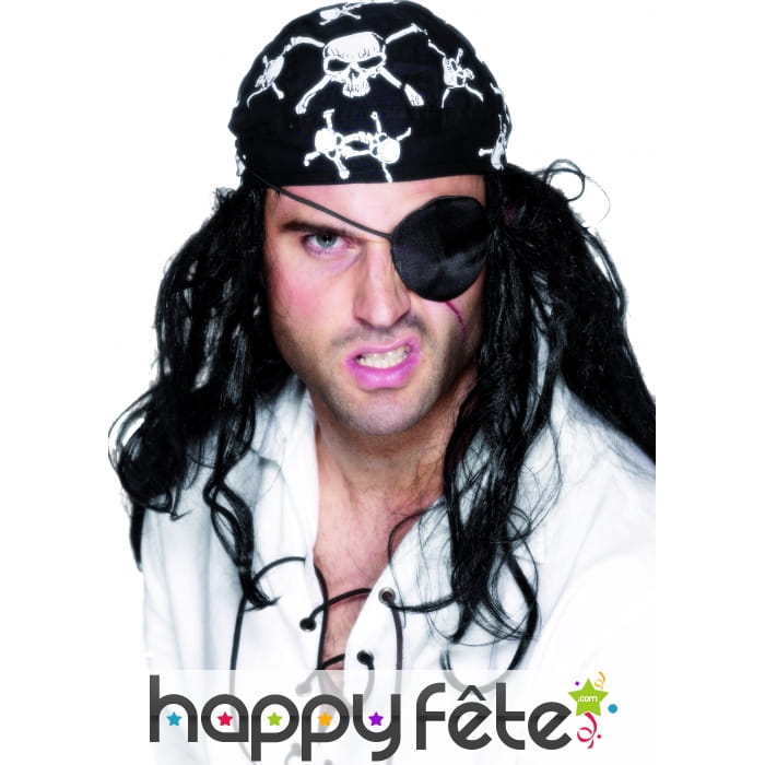 Cache-oeil de pirate en satin de couleur noire. Cet accessoire est idéal pour un carnaval ou pour toute autre fête basée sur un thème de pirates et de corsaires.