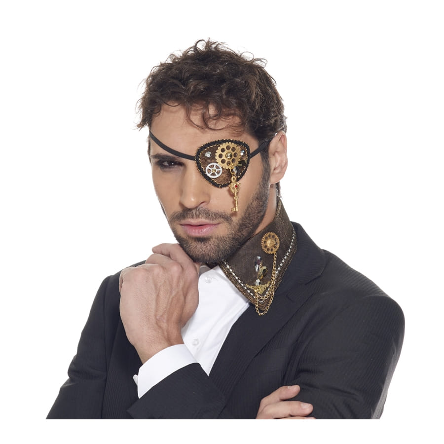Si vous voulez mettre la main sur le parfait accessoire pour un look de pirate, nous avons l'article qu'il vous faut. En effet, nous vous proposons ce cache oeil steampunk décoré, qui reste disponible sur notre site. Il peut aussi servir pour une fête à thème et surtout à l'occasion de la fête des morts. De couleur noire, il se trouve décoré de motifs dorés, afin de lui attribuer encore plus de style !