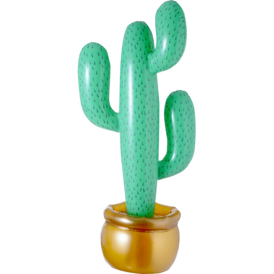 Cactus gonflable de couleur vert dans un pot doré. La taille de ce cactus est de 90 centimètres de hauteur. Utilisez cet accessoire pour compléter une décoration spéciale Western.