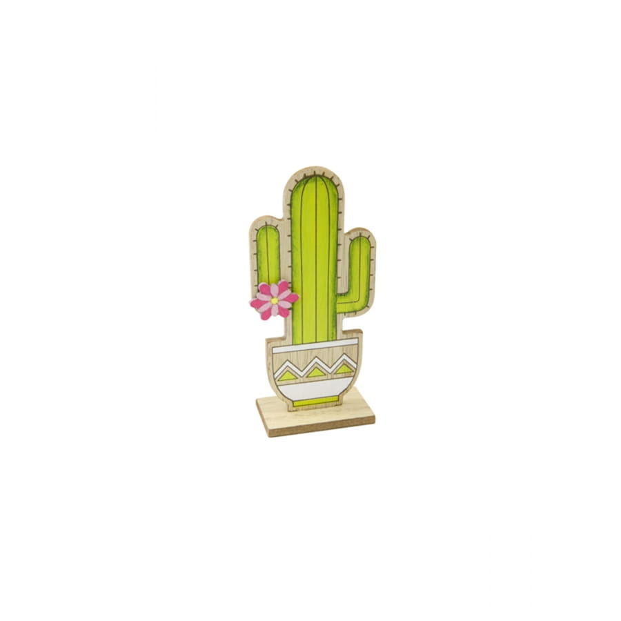 Fait en bois, ce cactus est très chic et agrémenté d'une petite fleur de côté. Un support rectangulaire permet de le maintenir debout.