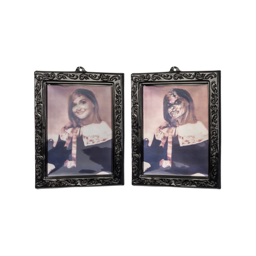 À l'occasion de la fête d'Halloween, agrémentez votre décoration avec le cadre 3D de jeune fille terrifiant de 29 x 23 cm.