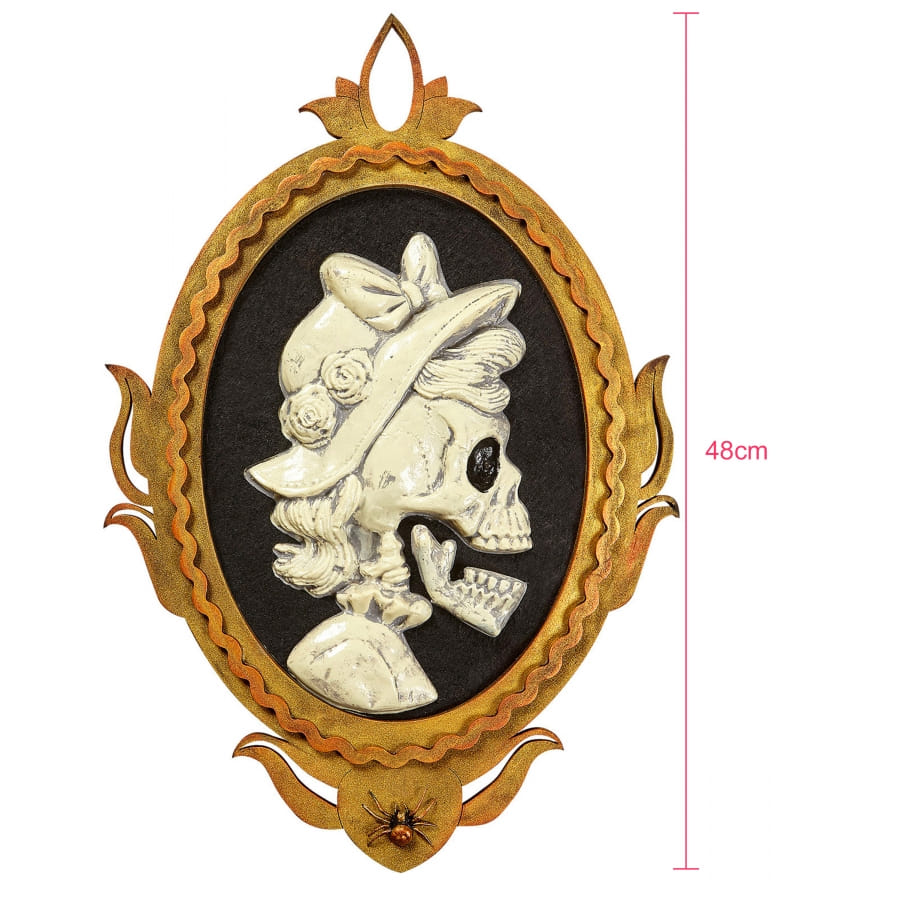 Imaginez un peu le tableau. Vos amis entrent chez vous, la lumière est tamisée, des chandelles vacillent... et là, accroché au mur, un cadre aux teintes dorées présente une dame squelette de profil, majestueuse sur fond noir. C'est déjà cool, n'est-ce pas? Mais attendez, ce n'est que le début.