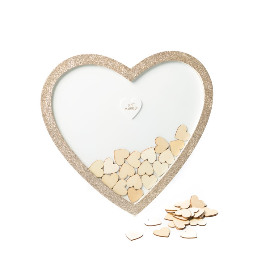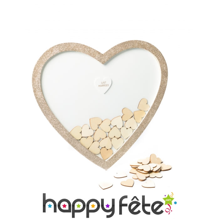 Ces coeurs permettront à vos convives d'y inscrire leur prénom et des mots gentils à l'attention des mariés, avant de les introduire dans le cadre par la fente prévue à cet effet.