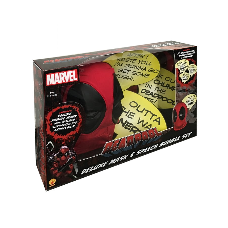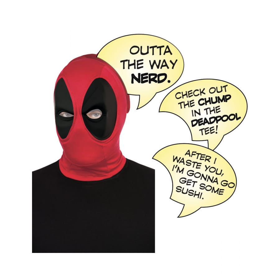 A l'occasion d'Halloween ou d'une fête déguisée, entrez dans sa peau en mettant sur votre tête cette cagoule Deadpool avec bulles de BD pour adulte.