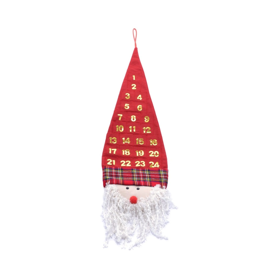 Ce décor calendrier de l'avent père Noël se présente sous forme d'une tête de Père Noël avec son bonnet rouge en feutrine. Les chiffres du calendrier sont imprimées sur l'avant du bonnet. L'article a une dimension de 80 x 23 cm. Indispensable pour patienter avant Noël, il fera plaisir aux petits comme aux grands !