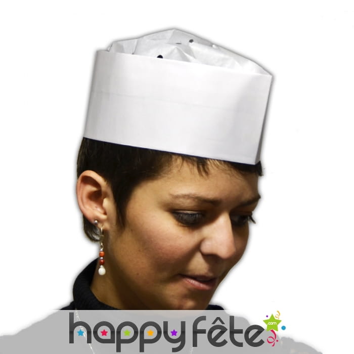 Pour un déguisement de cuisinier ou d'autres personnages nécessitant un calot, vous n'aurez pas besoin de vous procurer un vrai calot en tissu pour ensuite ne plus l'utiliser à l'avenir. Celui-ci, un calot jetable en papier, suffira pour garnir un costume le temps d'une fête déguisée. Il est de couleur blanche et disponible pour homme et femme.