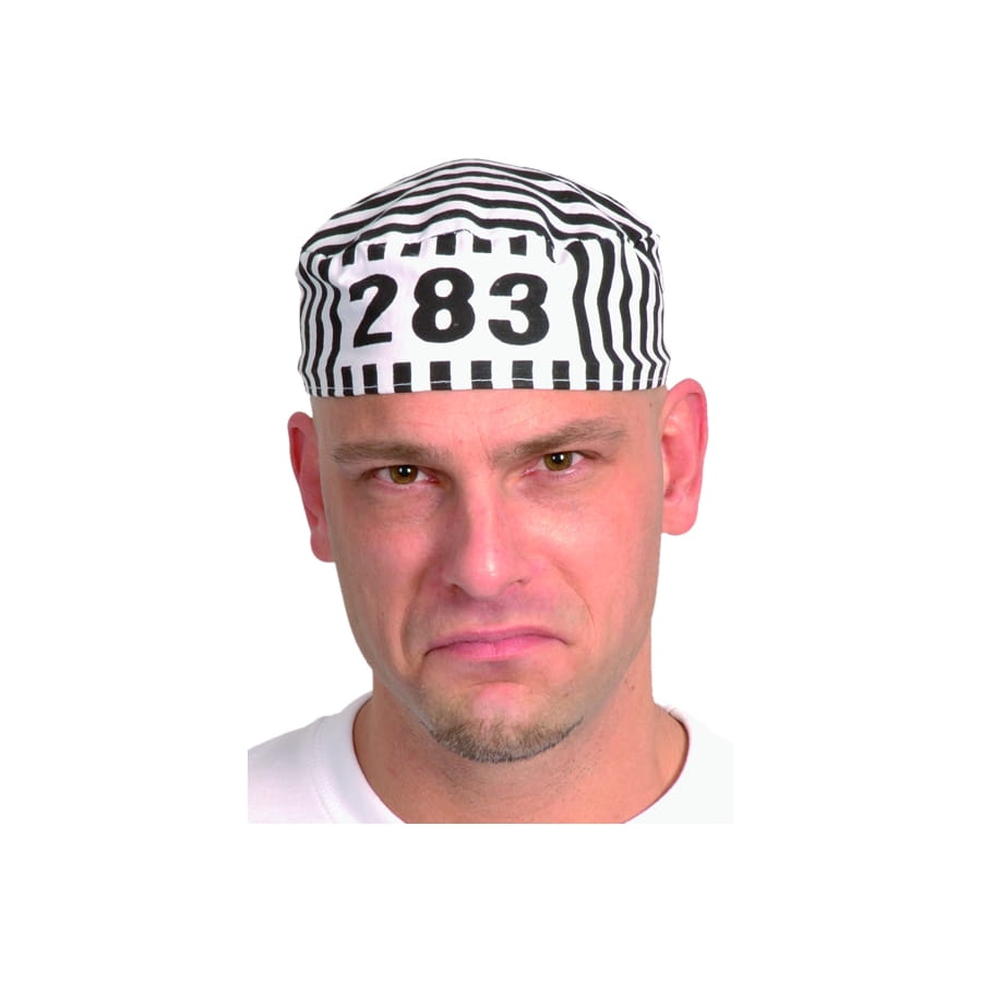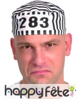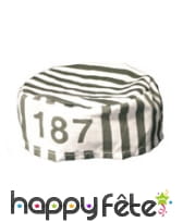 Vous serez un parfait prisonnier avec ce calot de bagnard noir et blanc avec numéro imprimé. Cet accessoire est parfait pour faire de vous un dangereux prisonnier à l'occasion d'Halloween.