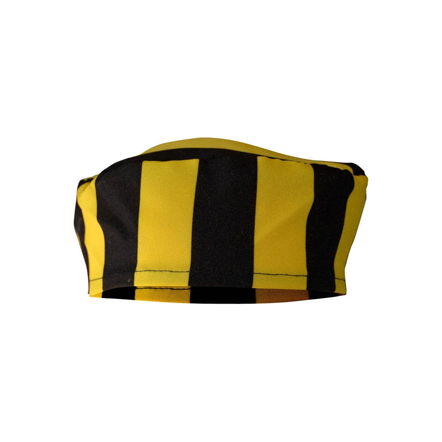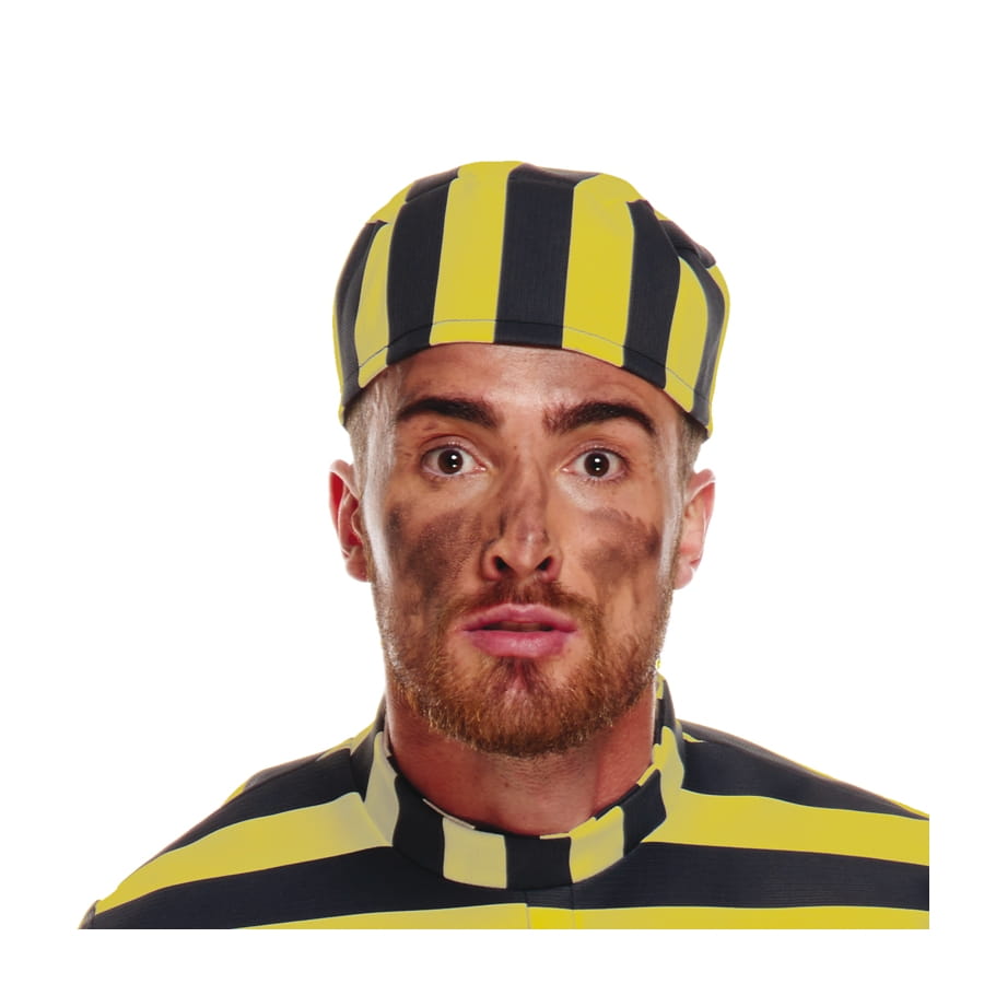Calot de prisonnier à rayures de couleur noir et jaune, pour homme. Cet accessoire est parfait pour compléter un uniforme de prisonnier à l'occasion d'un enterrement de vie de jeune fille ou de garçon.
