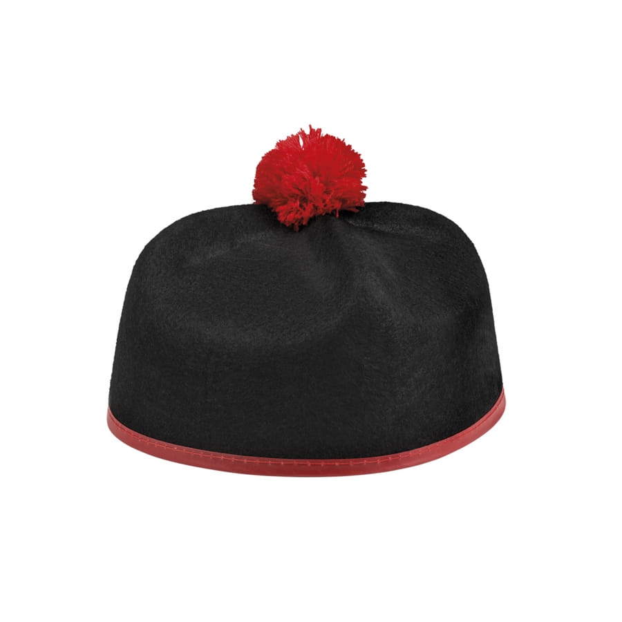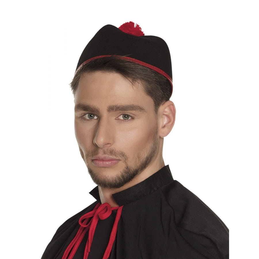 Le calot noir de prêtre avec pompon rouge est un chapeau destiné aux hommes.