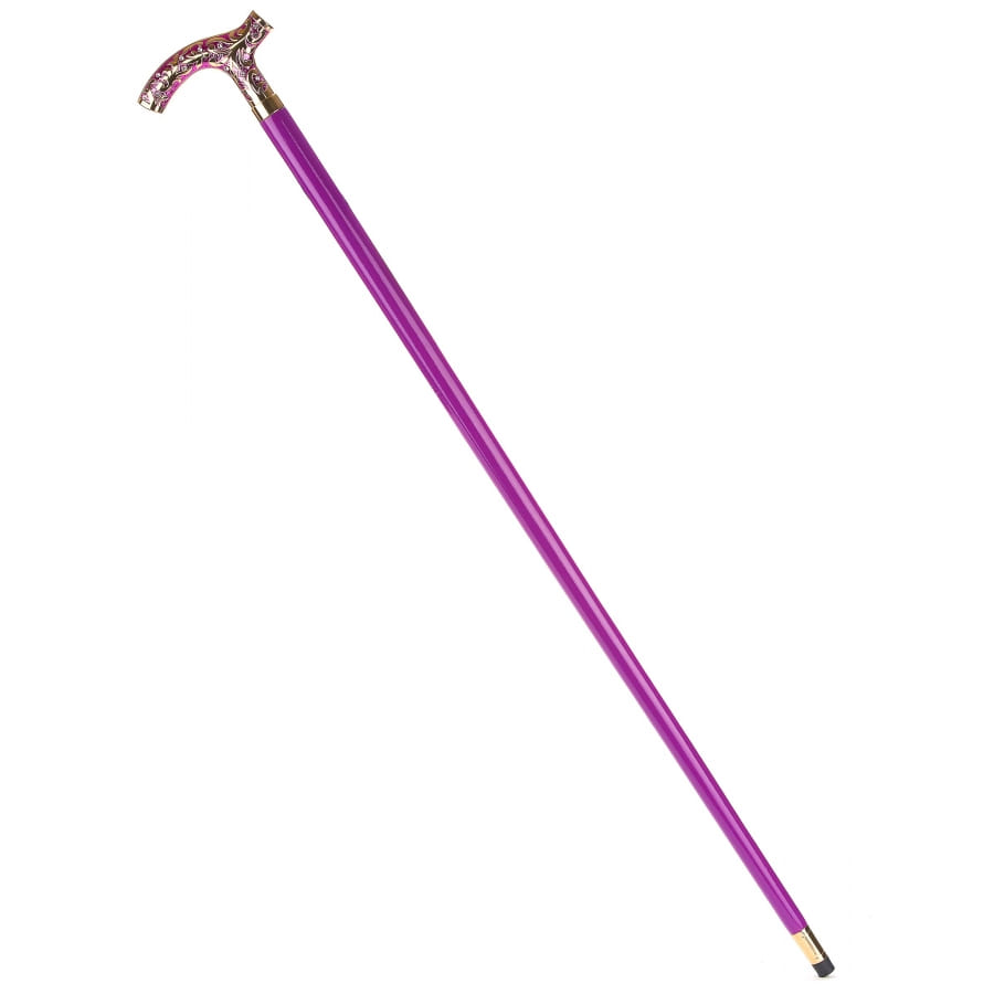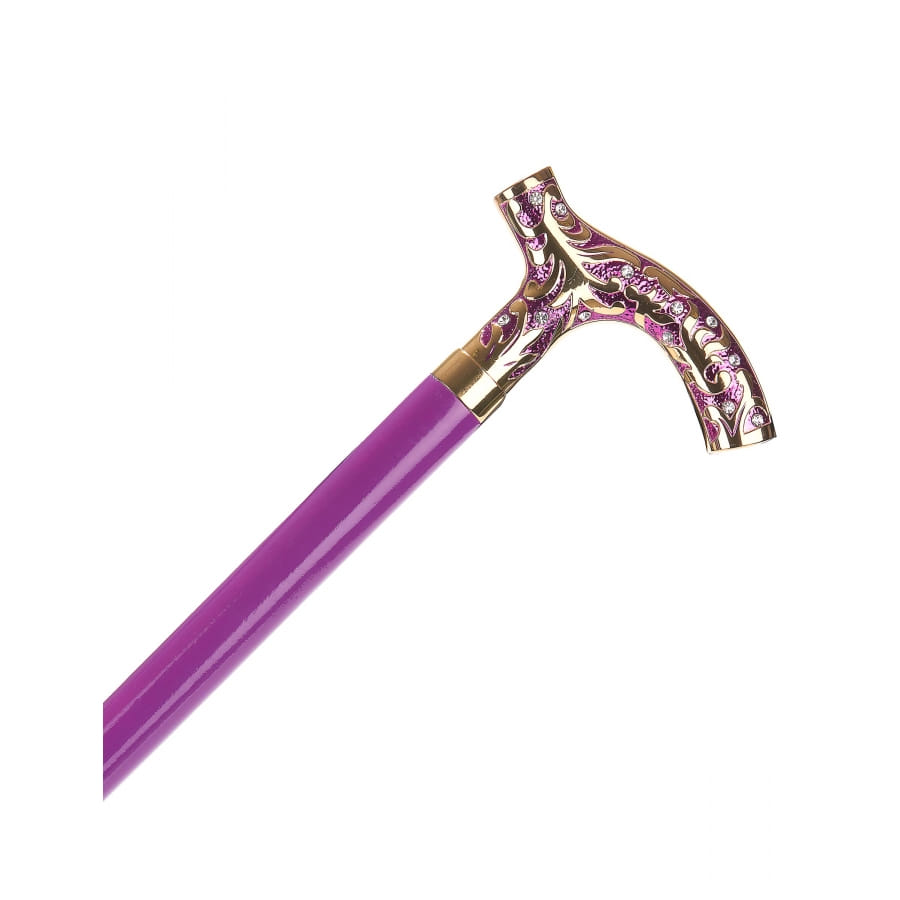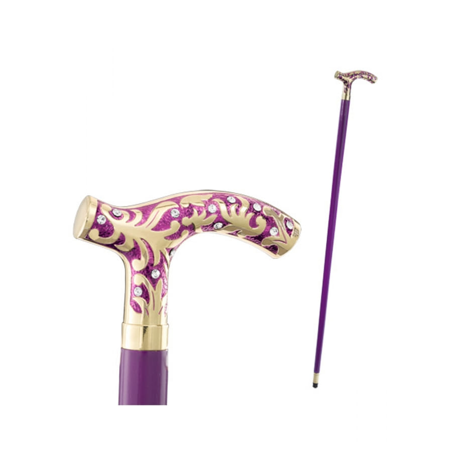 Elle est dotée d'une poignée métallique recouverte de couleur or et violet qui est incrustée de strass.