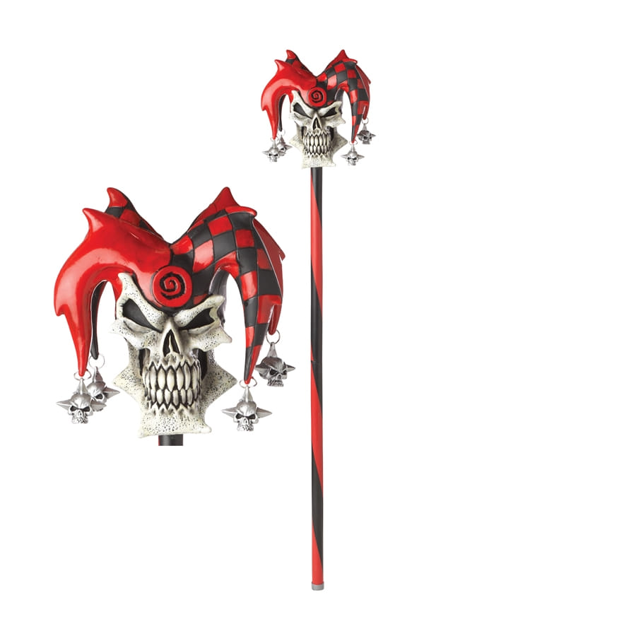 Pour vous plonger totalement dans la peau d'un bouffon sinistre, choisissez cette canne squelette de bouffon rouge ! Elle mesure 101,6 cm de long, munie d'un manche tête de mort agrémenté d'un bonnet de bouffon et de grelots. Cet accessoire de déguisement est généralement de couleur noire et rouge, avec quelques touches blanches et argentées. Il est dédié aux adultes. Parfait pour Halloween, une soirée Horreur ou d'autres occasions de votre choix.