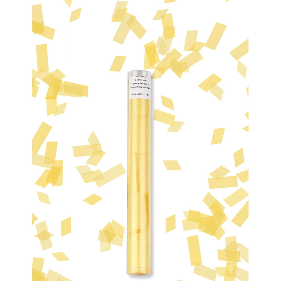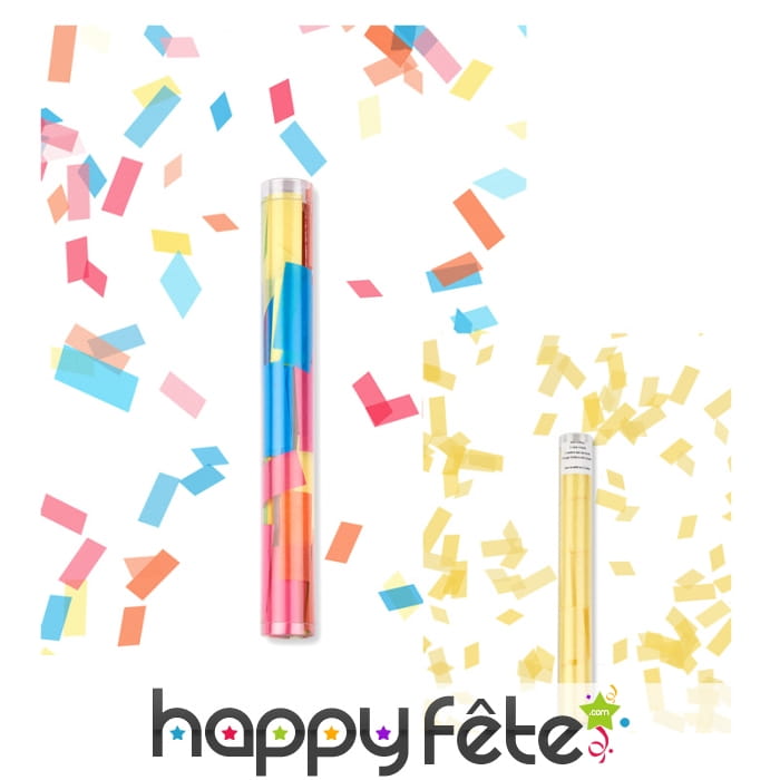 Il s'agit d'un canon à confettis qui contient des confettis de couleur jaunes ou multicolores (au choix).