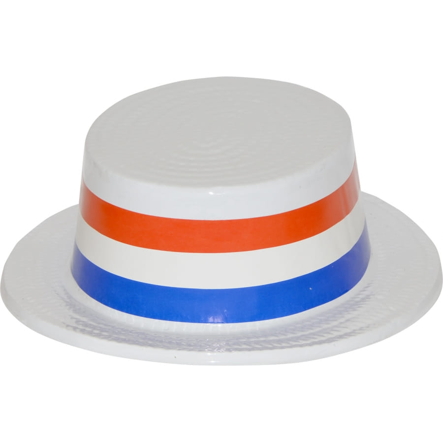 Fêtez le 14 juillet avec ce canotier en plastique bleu, blanc et rouge, aux couleurs de l'hexagone. Cet accessoire est parfait pour mieux montrer votre enthousiasme pour une fête nationale!
