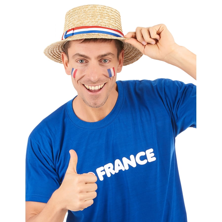 Pourquoi ne pas ajouter ce chapeau canotier aux couleurs de la France (pour adulte) à la liste d'accessoires que vous souhaitez commander sur notre site ?