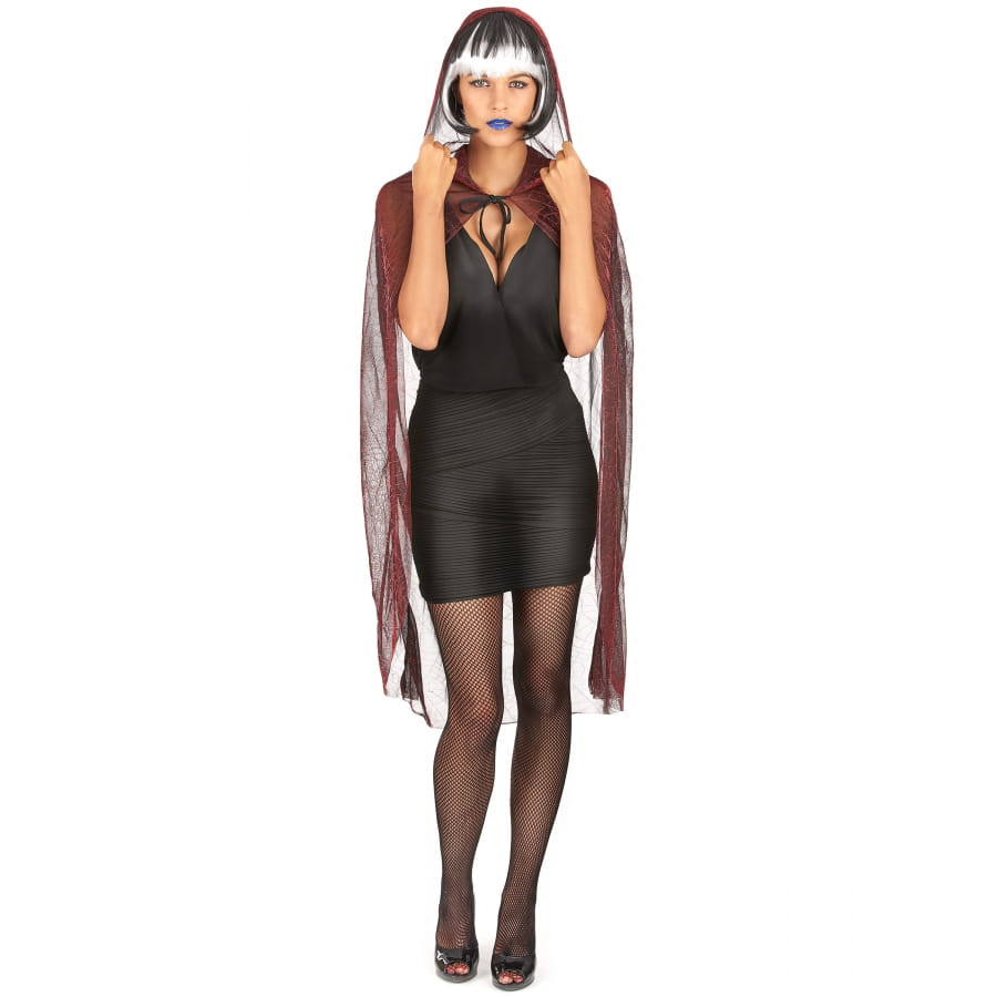 La cape araignée en tissu transparent avec capuche est un accessoire destiné aux femmes.