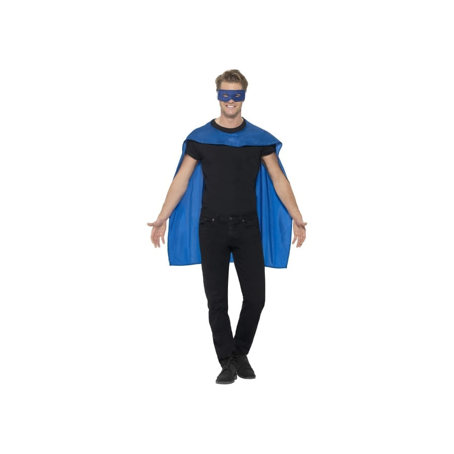 Cet accessoire de déguisement cape bleue pour adulte est conçu pour homme et femme. Il est composé d'une cape bleue et d'un loup assorti. La cape se ferme à l'avant par un velcro. Ce kit sera parfait pour un carnaval, une fête déguisée ou une soirée sur le thème "Action et aventure".