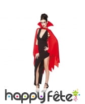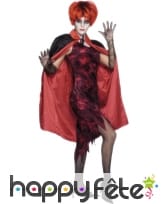 L'ensemble présente une cape en tissu rouge et légèrement brillant.