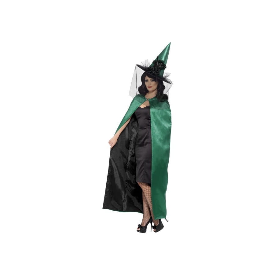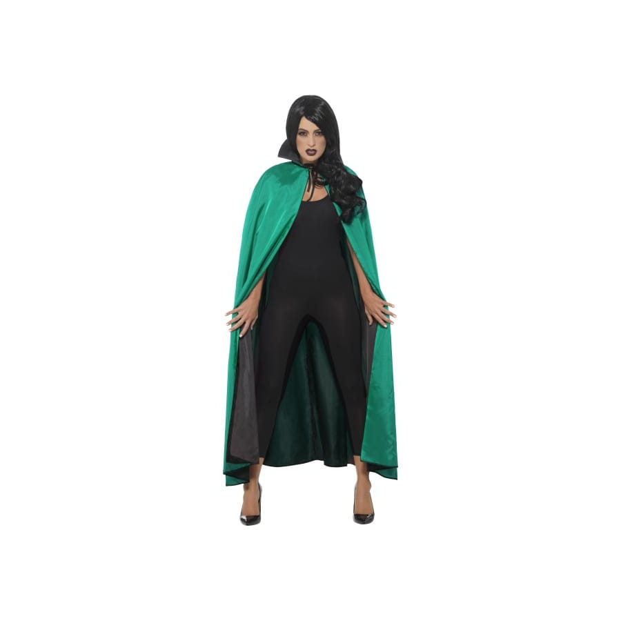 Si vous cherchez une cape pour accompagner votre déguisement de sorcière, nous vous proposons la cape de sorcière verte réversible. Comme son nom l'indique, elle est à double face. En effet, elle a un côté vert foncé et son autre côté se rapproche d'un vert encore plus sombre. La cape de sorcière verte réversible est conçue dans un tissu satiné très fluide. De ce fait, les mouvements s'en voient plus améliorés.