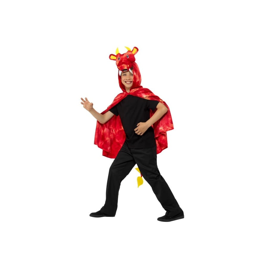 On ne le trouve pas que dans les films et les dessins animés ! Ce reptile géant débarque aussi dans les fêtes déguisées grâce à une splendide cape dragon rouge pour enfant. Cette fabuleuse cape rouge légèrement tachetée de blanc possède une capuche intégrée. Elle représente la tête du dragon avec ses deux cornes au sommet. Une crête de couleur jaune et rouge parcourt le dos et elle se termine par une queue.