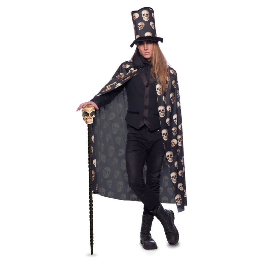 Marquez le coup en faisant une entrée peu banale, grâce à cet ensemble cape et haut de forme têtes de mort adulte.