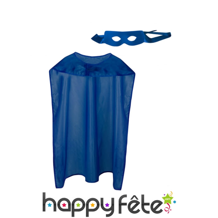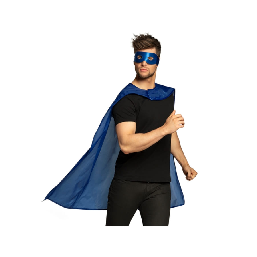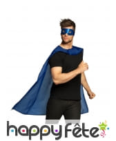 Échappez à la monotonie avec l'ensemble cape et masque bleu de superhéros pour adulte.