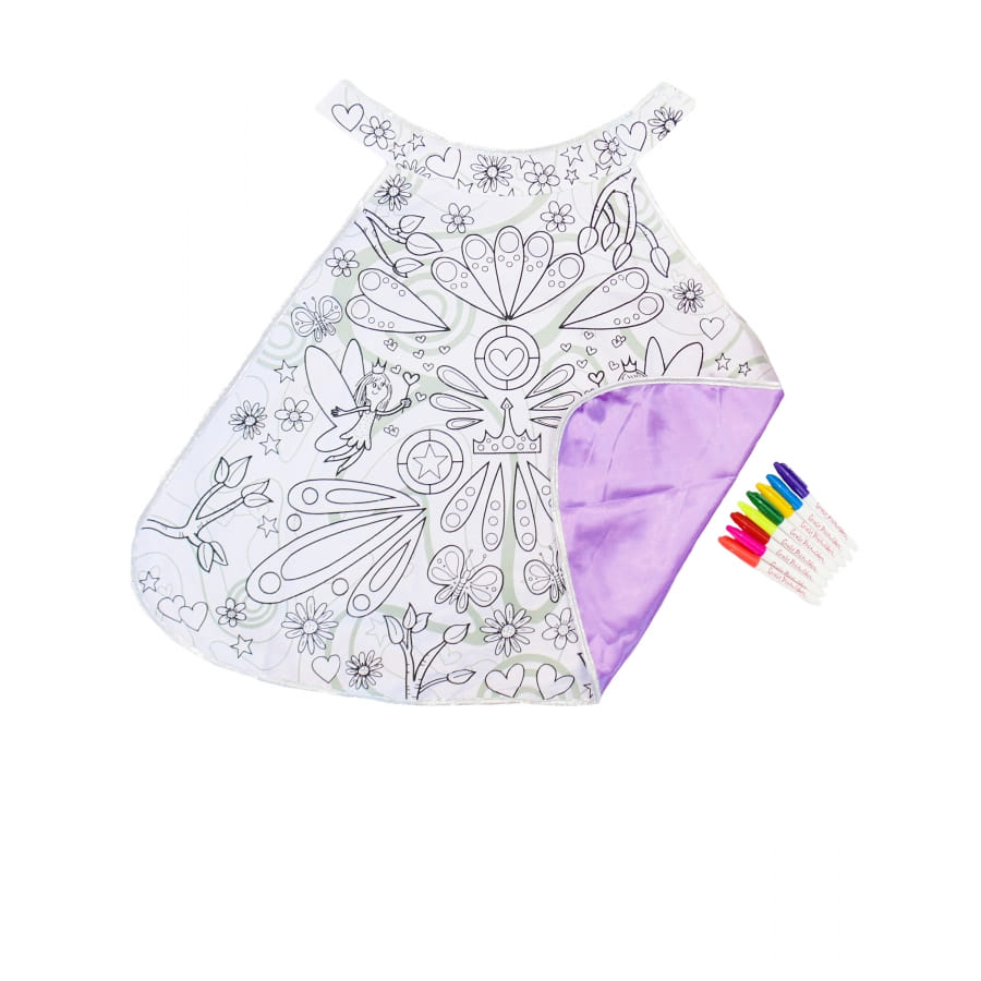 Pour que votre petite fille puisse la colorier, vous recevrez avec cette cape 8 feutres non toxiques à base d'eau.