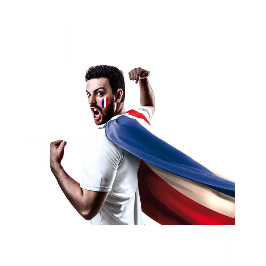 Cette cape drapeau Français vous permettra de montrer à votre entourage quelle équipe vous soutenez lors des événements sportifs.