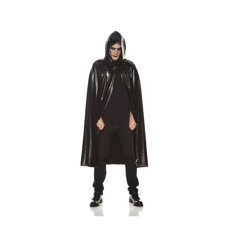 Soulignez le côté mystérieux de votre déguisement d'Halloween grâce à cette cape noire brillante avec capuche. C'est un article en lurex qui se prête à votre déguisement de vampire, de mariée au jour de mort ou Dark Vador. Un costume unisexe qui peut être porté par un homme ou une femme.