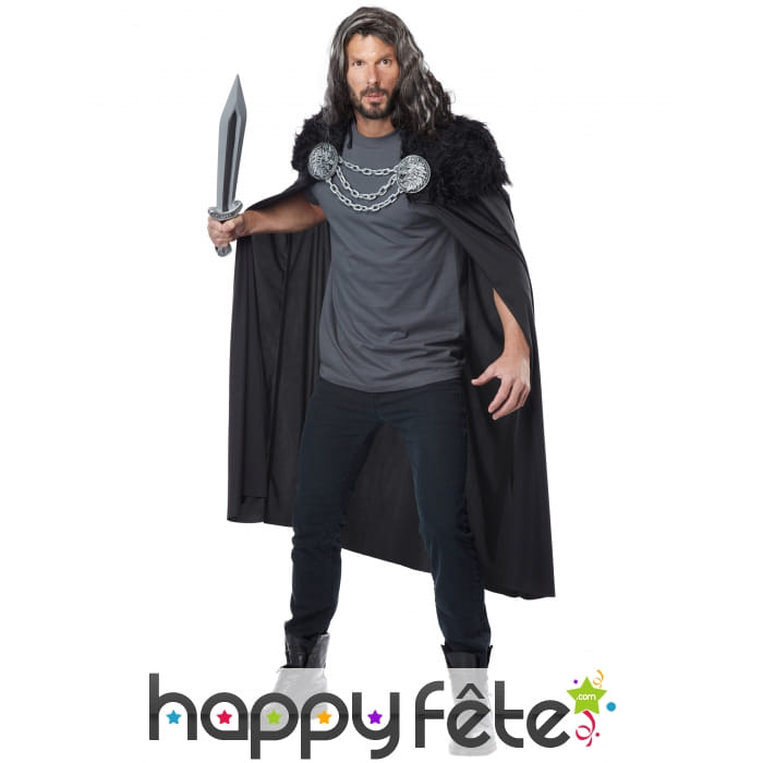 La cape noire de guerrier blason loup pour adulte est destinée aux hommes.