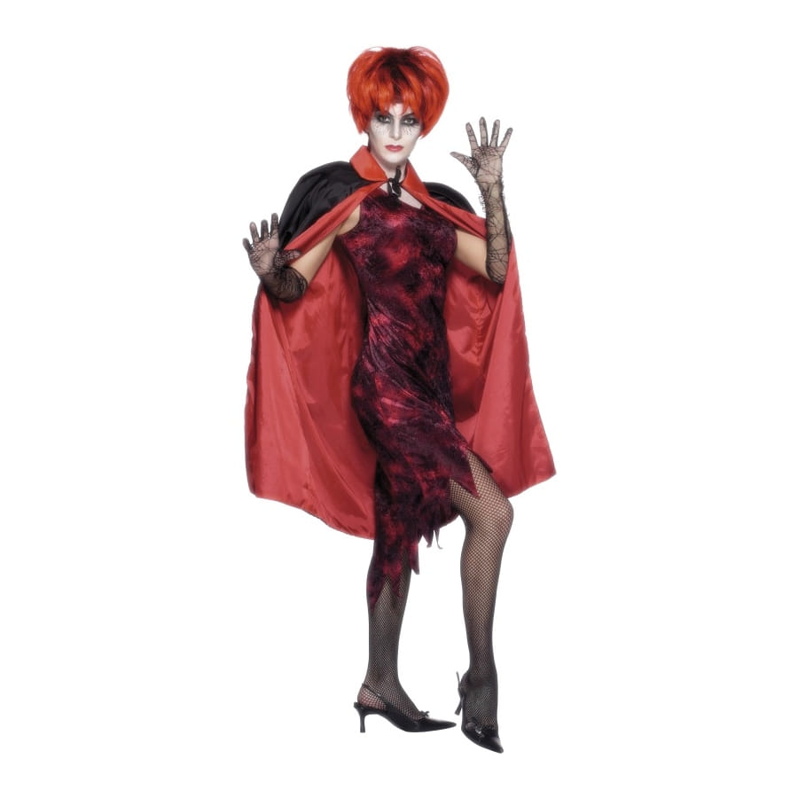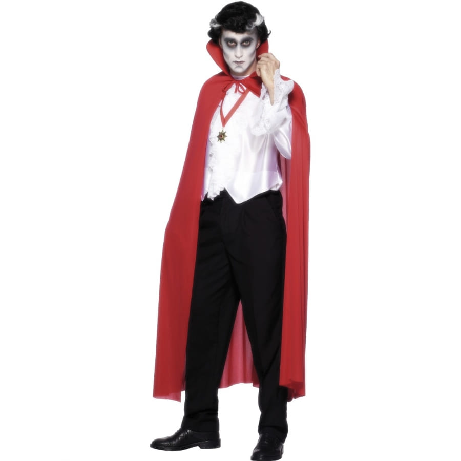 Cape réversible brillante de couleur rouge et noire, pour homme ou femme. Cet accessoire mesure 112 centimètres de long. Associez cette superbe cape à un déguisement de vampire ou de personnage gothique pour un maximum d'effet à l'occasion d'Halloween.