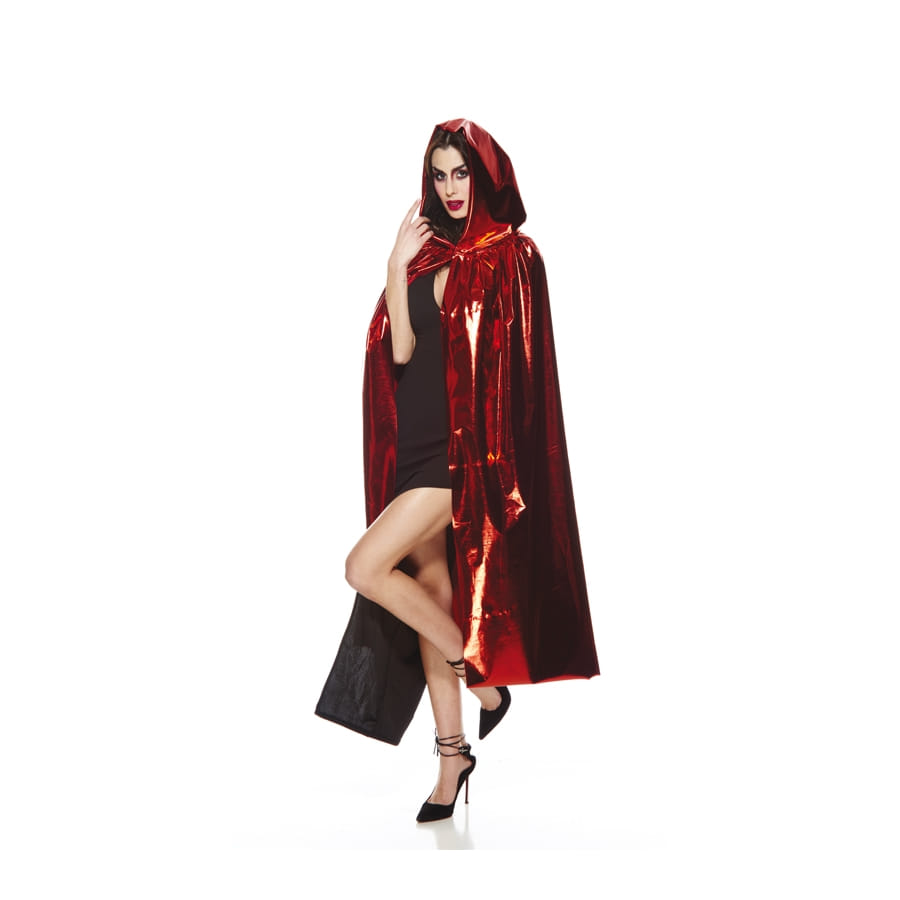 Rien de tel qu'une jolie cape brillante pour accompagner un déguisement disco sexy ou une déesse grecque. La couleur rouge affirmera votre féminité et l'effet brillant sublimera votre tenue. Pour fermer la cape, le col est à nouer autour du cou et la capuche s'enfile facilement. Sa matière est en lurex et sa longueur est de 120cm.