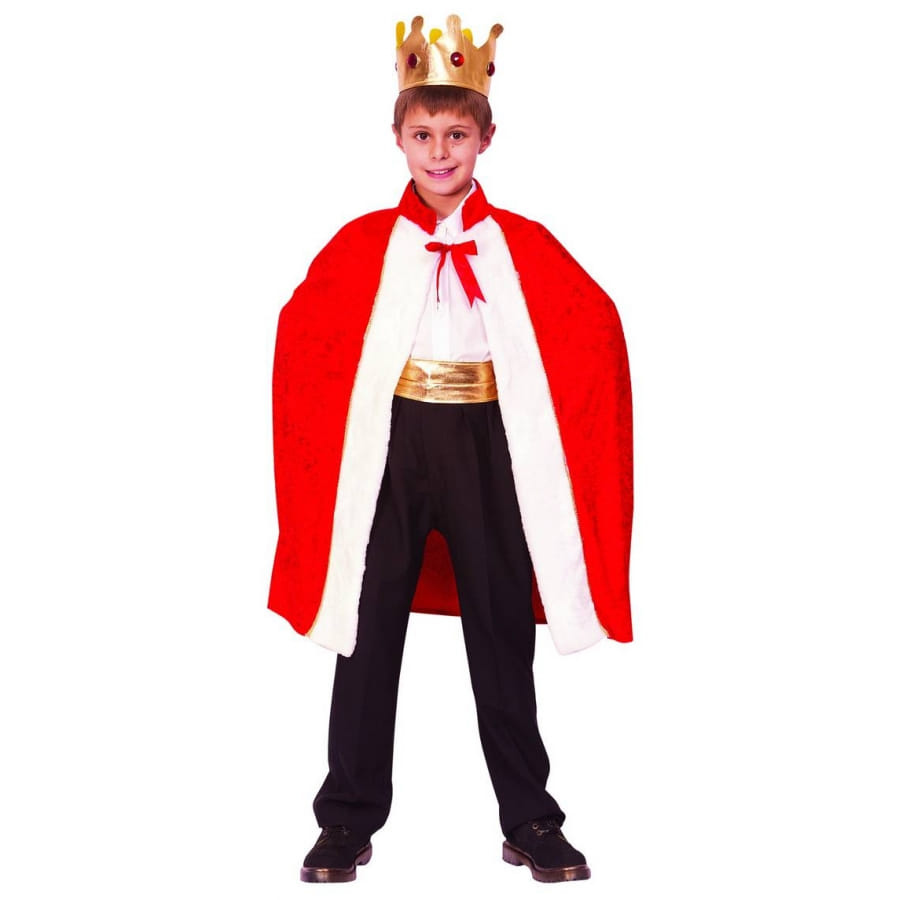 Votre petit garçon sera le plus beau prince/roi de sa fête d'anniversaire, d'un carnaval ou d'une fête costumée avec ce déguisement comprenant une cape rouge de roi avec couronne, pour enfant.
