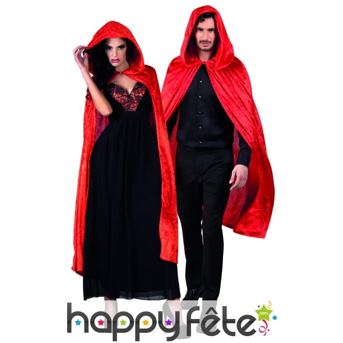 Vous pourrez agrémenter votre tenue de petite chaperon rouge, de la faucheuse, de superhéros, de magicien, de sorcier ou de vampire avec cette cape effet velours avec capuche pour adulte.