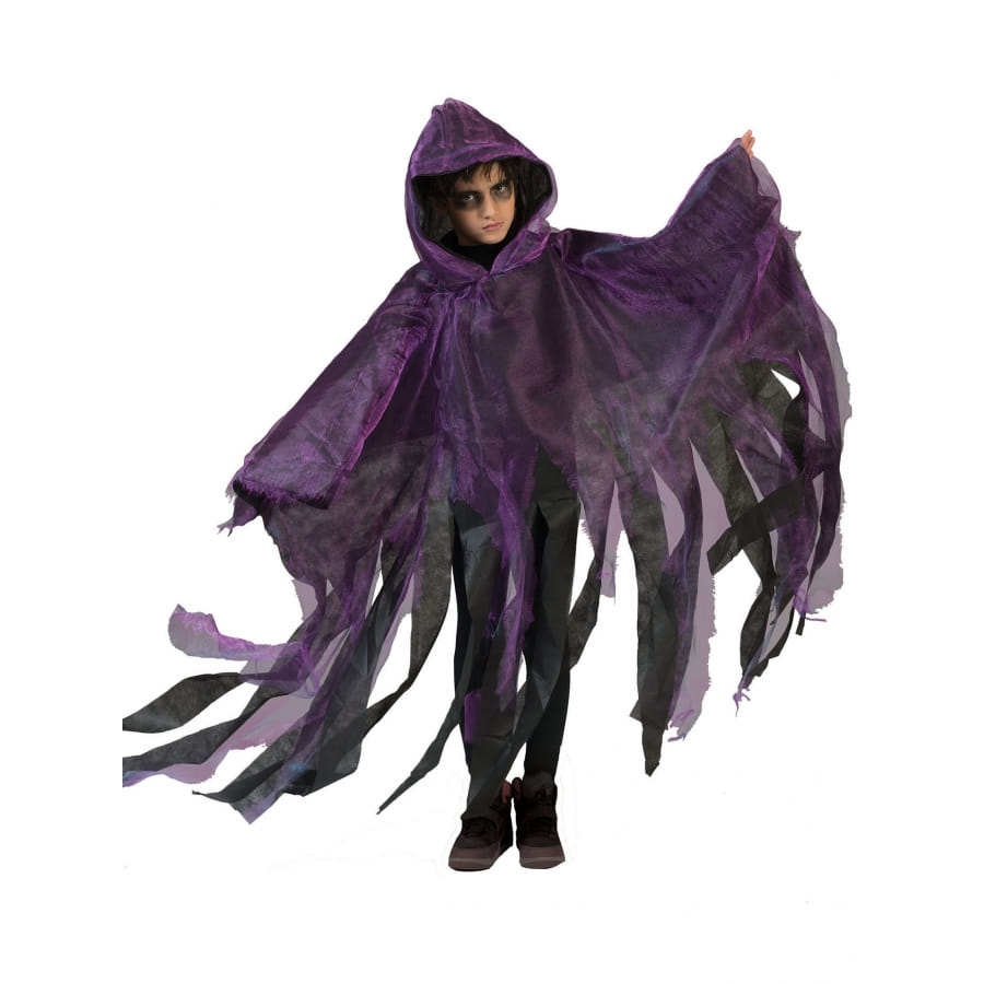 Cette cape violette et noire en lambeaux pour enfant transformera votre adorable petit garçon en petit démon.