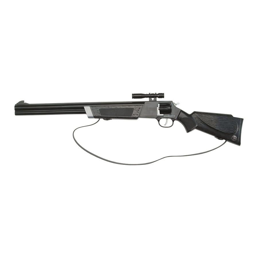 Plongez dans une ambiance Western avec cette jolie carabine 8 coups avec viseur de la marque MAVERICK ! Elle est faite en métal et en PVC, c'est un accessoire spécialement conçu pour la gente masculine, les grands comme les petits. Elle est de couleur noire et mesure 60 cm. Ce produit de qualité mettra en valeur vos déguisements de Cow-boy, le temps d'une soirée western, ou lors de toutes autres occasions.