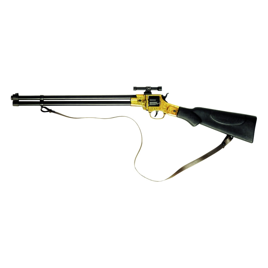 Cette carabine en métal 8 coups de 71 cm conviendra parfaitement lorsque vous vous transformerez en cowboy lors du carnaval. Pour vous monsieur, cette carabine en métal de couleur jaune, argent et noir sera idéal lorsque madame organisera une soirée a thème western. Avec une ceinture, vous le porterez aisément sur votre épaule.