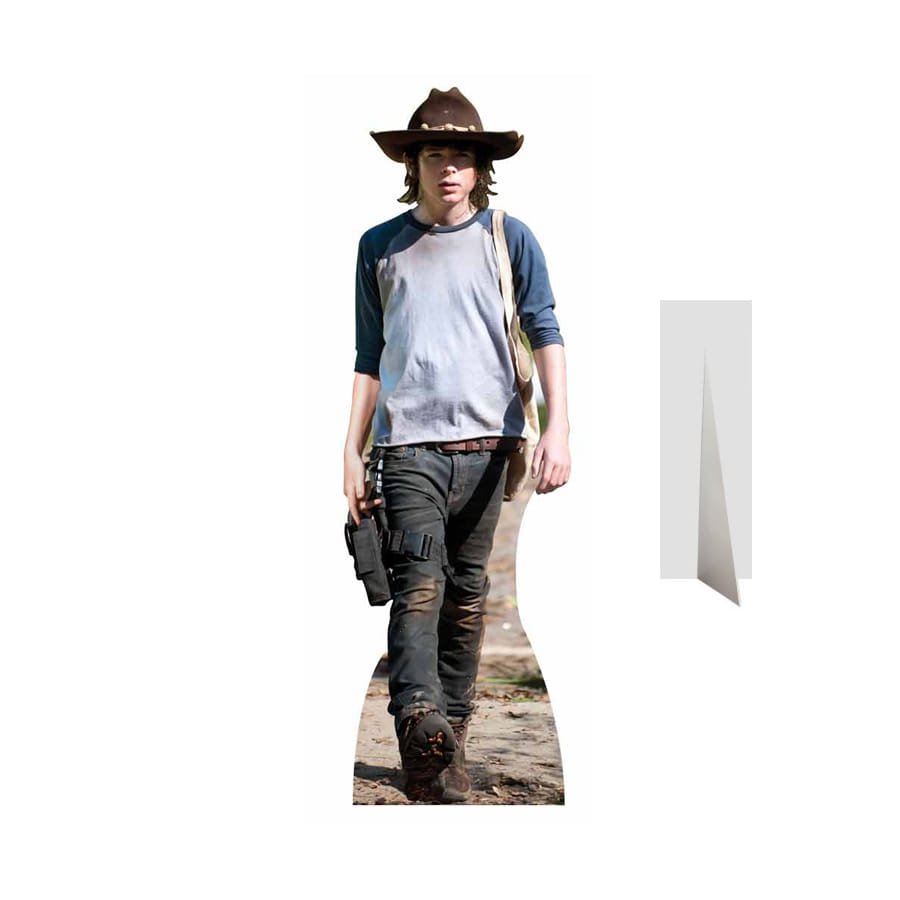Voici un article de cadeau original que vous pouvez offrir à un grand fan de la série télévisée The Walking Dead. Il s'agit du produit Carl the walking dead taille réelle. Cette silhouette taille réelle en carton plat mesure 181 cm de hauteur et représente le personnage de Carl Grimes qui est interprété par Chandler Riggs.