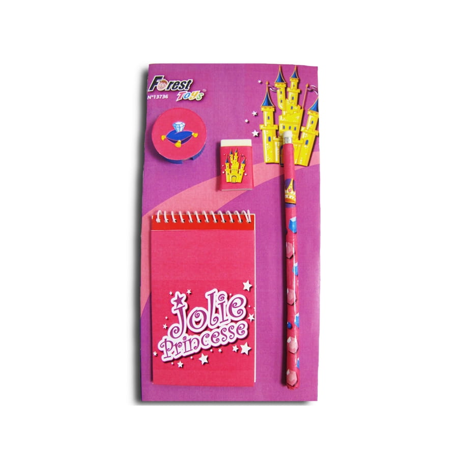 Les princesses ont toujours un programme bien chargé ! Grâce à son carnet de note princesse et accessoires, votre petite fille pourra inscrire son emploi du temps, ses petites notes et ses pensées. L'article comporte un carnet de note, un crayon, une gomme et un taille crayon, le tout de couleur rose.