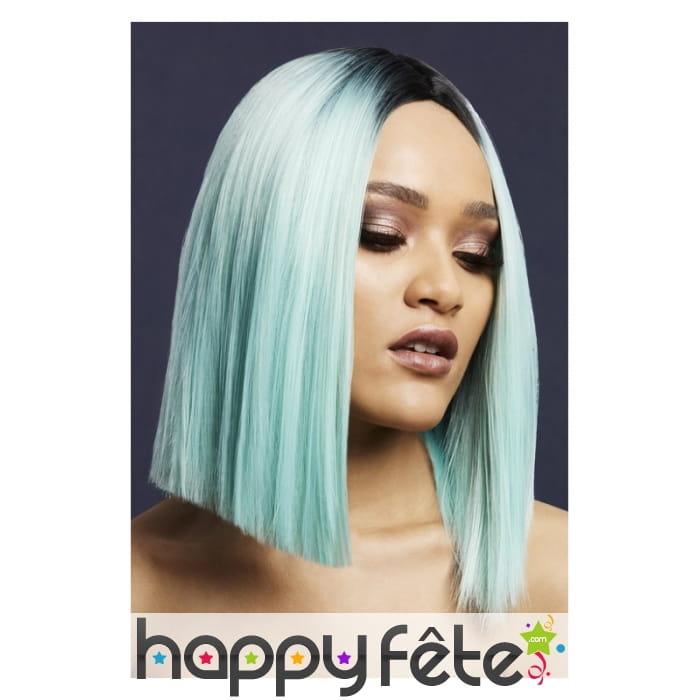 Apportez la touche finale à une tenue de séductrice, en arborant le carré long droit bleu pastel avec racines noires.
