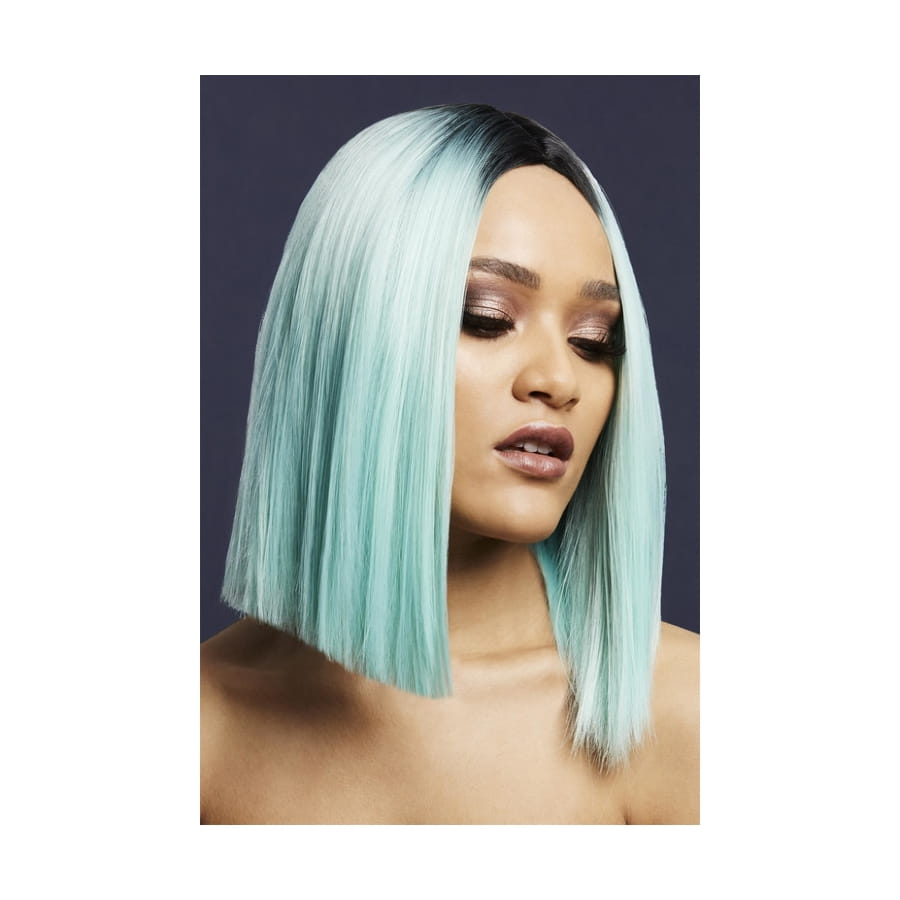 Nous parlons ici d'une perruque composé de cheveux synthétiques lisses et bleu pastel.