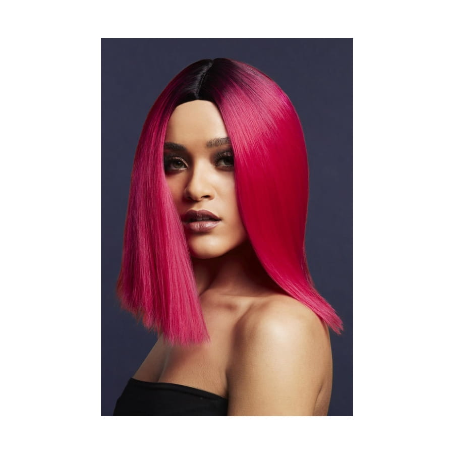 Incarnez une diva à la personnalité affirmée, grâce au carré long droit rouge rosé avec racines noires.