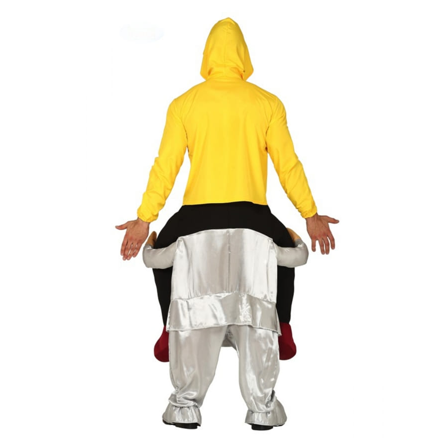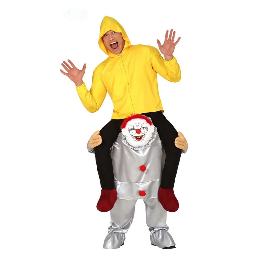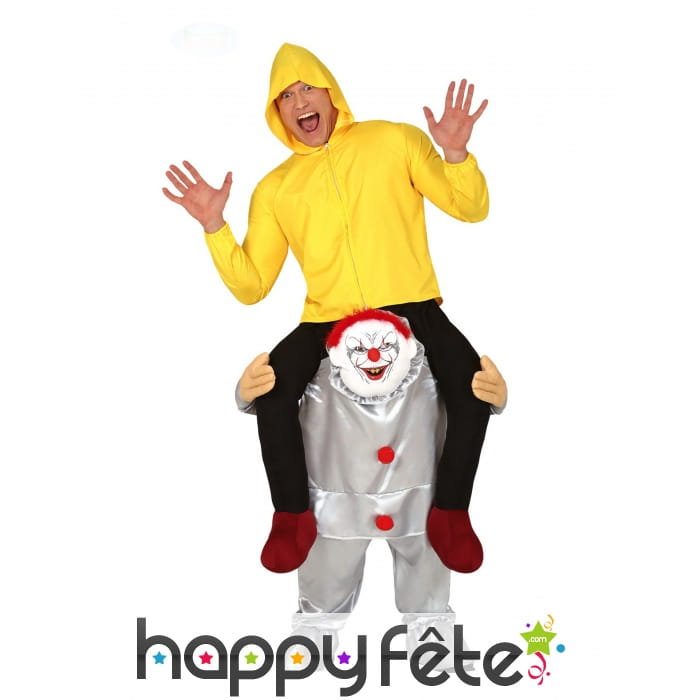 Ce Carry me à dos de clown tueur pour adulte donnera l'illusion parfaite que vous êtes porté par un terrifiant clown déguisé en gris métallisé.