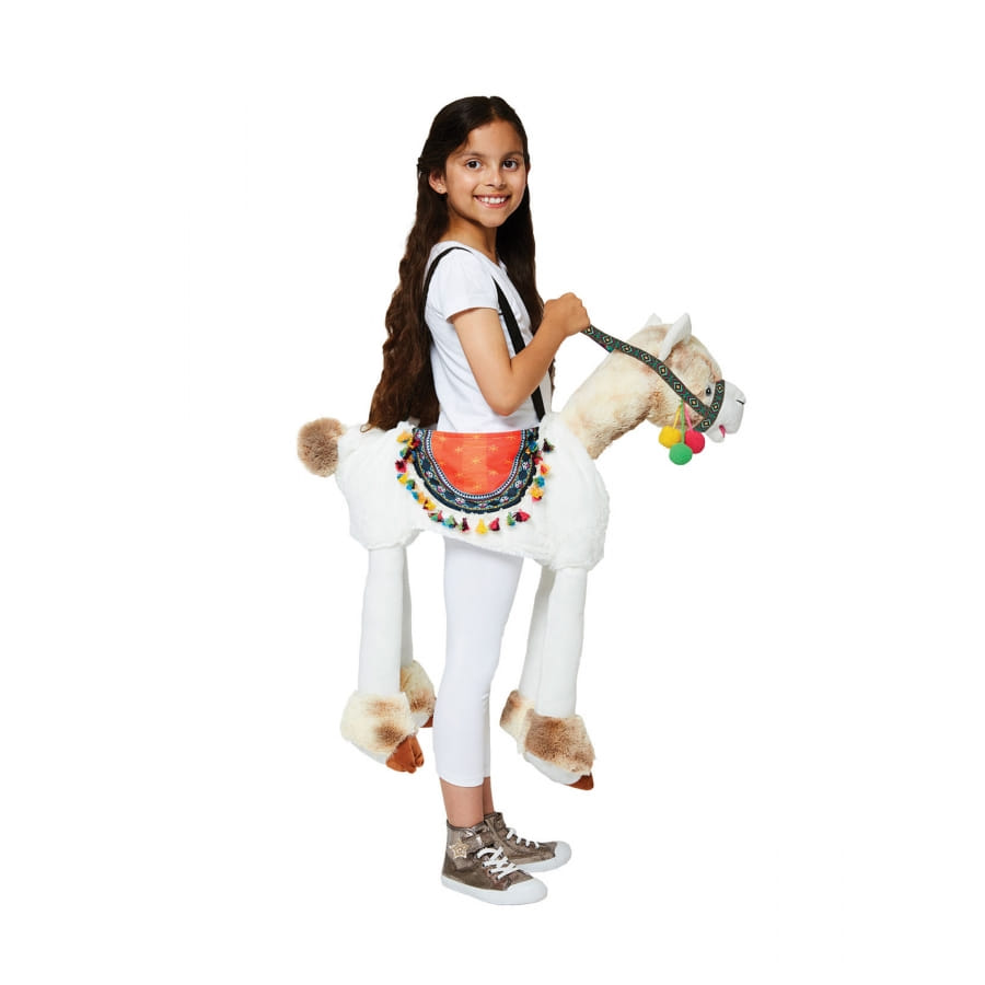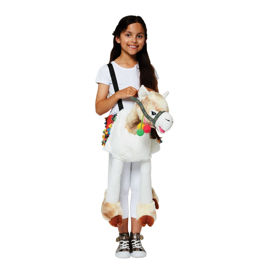 Démarquez votre enfant, fan des camélidés, lors d'une soirée sur le thème Animaux grâce au Carry me de lama blanc et pompons colorés, enfant.