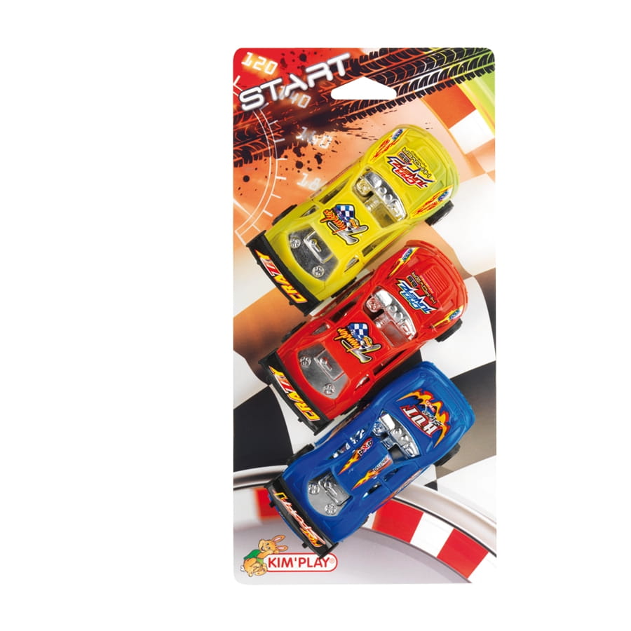 Une super course va bientôt commencer ! Les concurrents sont déjà sur la ligne de départ et il sont tous prêts à donner le meilleur d'eux même ! Grâce à ce lot de 3 voitures de course, votre petit ange pourra défier ses amis ou son papa. Voici 3 petites voitures très puissantes, présentées dans un blister. Elles affichent différentes couleurs qui peuvent varier en fonction de l'arrivage. Et c'est parti pour un tour !